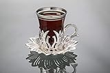 LaModaHome - capacity 33 oz 100ml approx height 4 inches Color silver ottoman style tea serving set Made in turkey the set includes 6 glasses 6 saucers all our products are well made and will be sent with a perfect packaging We also have a 30 days no questions asked return and replacement guarantee the glasses can be removed from the holders and suitable for machinewashing