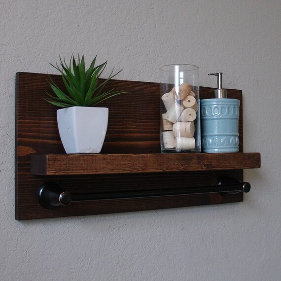Handmade bathroom shelf with an 18" dark bronze towel bar. The perfect addition to any home bathroom or apartment.