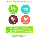 Safe for home kitchen prep multisized colorcoded chopping mats easily become personalized cutting boards for food prep Worry free and food safe cooks can separate meat veggies and fruit with each fleixble board Great for kosher or vegetarian diets or food allergies Our bpafree foodsafe is cutting boards are dishwasher safe making these hygienic and cleaner than other cutting food mat sets that absorb odors and juice