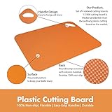 Flexible plastic cutting boardusing this flexible cutting board you can easily bend the cutting board and pour all the foods into the pot without worrying about foods residue or leaving a knife mark keeps the counter tops clean it is ideal for home cooking and also one of the musthave options for a picnic They are also so stunning they could be used as place mats
