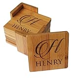 MOJIA - Package contains coasters with holder Each one of the custom coasters is 374inch95cm square 032 inch08cm thick Usually arrived within 715 days Practical these bamboo coasters will protect your counters and tabletops from liquid and can be used for any kind of glasses mugs and cups including coffee cup and drinking glass High quaility made from 100 high quality natural bamboo its durable luxury color and wood grain is very beautiful