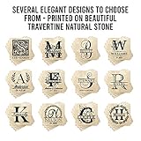 CoasterStone - Coordinates perfectly with traditional or modern décor palletes Slightly oversized at 4 25 diameter is great for any sized drink Four absorbent monogram drink coasters included Soft pad attached to provide extra protection for your tabletops