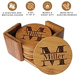 Personalized Coasters – Bamboo Coasters for Drinks with Holders – Round 7 Piece Set