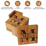 Personalized Coasters – Bamboo Coasters for Drinks with Holders – Square 7 Piece Set