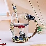 WOBOX - Material the unique coffee mug is made of heat resistant glasslead free heavy crystal glass and ecofriendly metal Unique handmade teacups set the mug made of handmade enamel 3d flower butterfly desigen and decorated by flower and butterfly The best gift for woman the tea mug and spoon are packed by beautiful gift boxso it is perfect gift for mothers dayfemale friends birthdaychritmas giftsgirlfriendsIt is a personalized gift idea for anniversary birthday christmas wedding graduation valentines day business gift set Include it comes with a beautiful gift box including mugspoon drink coaster and cleaning cloth