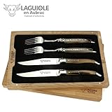 LAGUIOLE EN AUBRAC L - There may be slight differences between the actual colors and those displayed on your screen Set includes six handmade steak knives and a wooden storage case Blades are forged from ultra strong sandvik steel Each handle is decoration with snakewood pattern The decorative chasing on the metal spine is the signature of the craftsman who made the knife