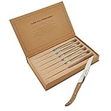 Features sharp edge with elegant wood handles classic and stylish design with laguiole bee embellished on each knife Size each knife 8 12 inches 80 grams Blade 4 inches 25 mm thickness Handle 4 12 inches Dishwasher not recommended Perfect gift choice suitable for use in family bar restaurant makes a great gift presented for family and friends